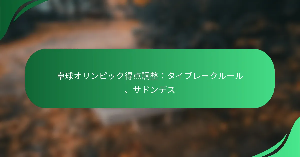 オリンピック卓球における最近の得点調整には、タイブレークルールの導入やサドンデス形式が含まれ、試合の興奮と競争力を高めることを目的としています。これらの変更は、よりダイナミックなゲームプレイへのシフトを反映しており、観客と選手の両方をより良く引き込むために実施されています。
